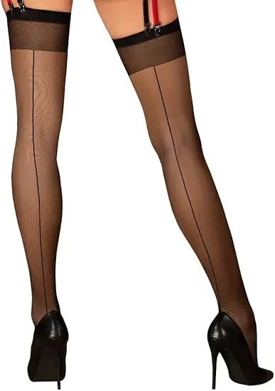 Obsessive Glandez – Hátúl csíkos comb harisnya (fekete)