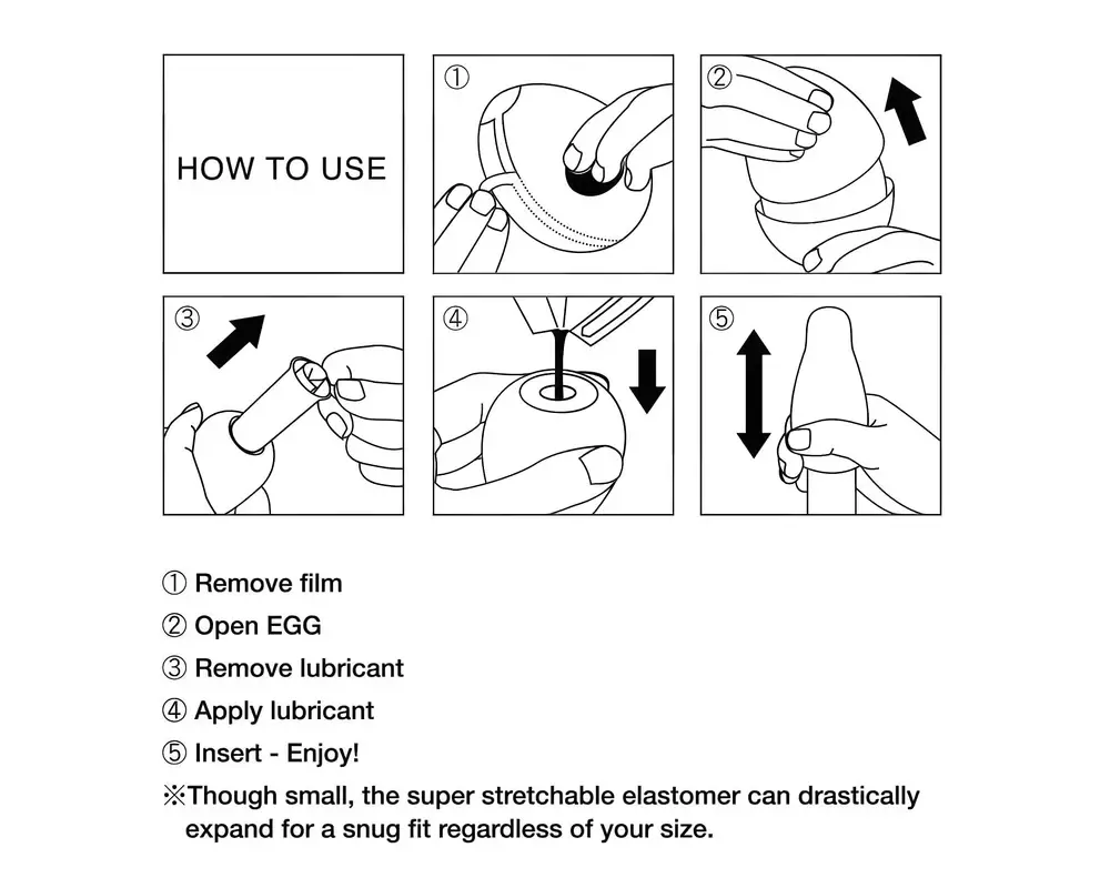 – Távolítsd el a perforált zsugorfóliát, nyisd szét a tojásformát, vedd ki a puha szilikon maszturbátort és a síkosítót. Öntsd a síkosítót a belsejébe, majd helyezd a péniszre, és élvezd a fel-le mozgatással nyújtott gyönyört – a szívecskés textúra minden egyes mozdulattal kényeztet!
